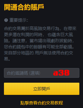 在合約邀請碼裡填寫a38然後點擊“立即開戶”,然後在進行期貨交易時就可以終生享受手續費返現。
