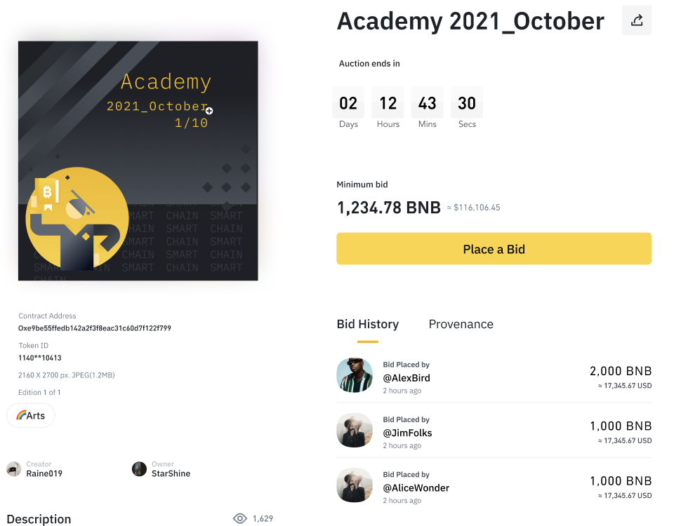 幣安NFT市場是一個允許您交易和創建非同質化代幣的平台。您可以在幣安智能鏈和以太坊上創建自己的NFT,甚至可在兩個區塊鏈之間進行轉移。當然,這個平台不只是惠及創作者,收藏者也可以通過這個內置的市場以固定價格或拍賣方式購買NFT。