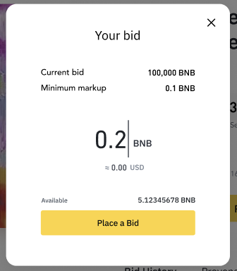 如果您選擇拍賣模式,就需要出價。在拍賣結束時出價最高的用戶可贏得NFT。點擊 [出價] (Place a Bid)進行下一步。
