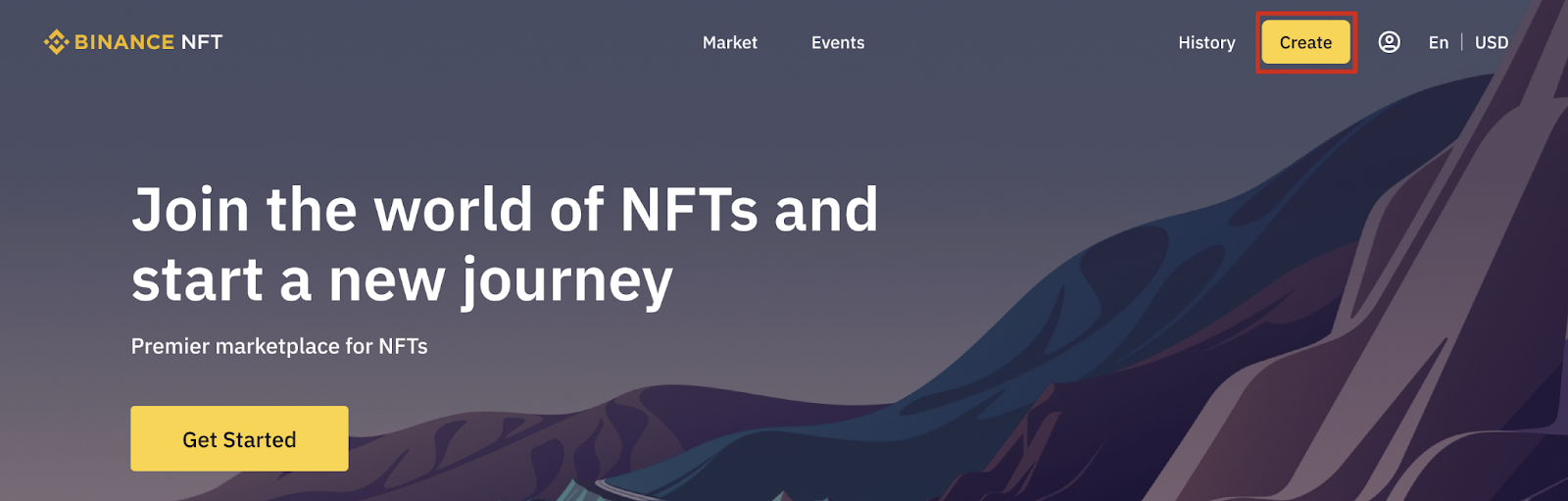 於幣安NFT市場主頁點擊 [創建](Create)。