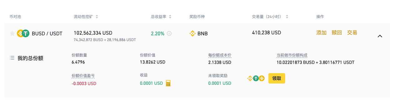 - 份額構成:獲得的份額中,兩種數字貨幣的數量。
