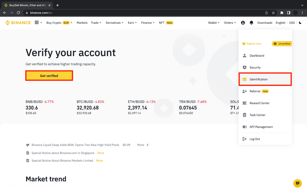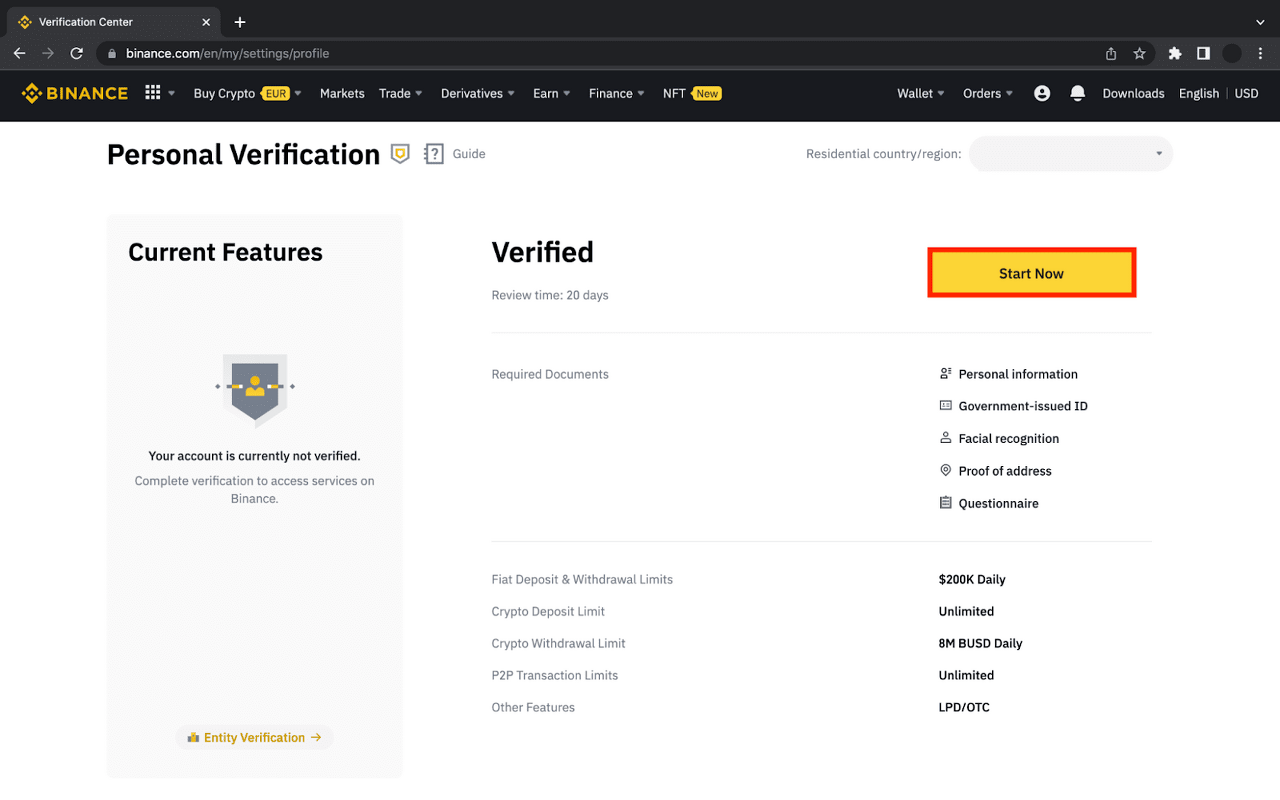 請注意,您必須驗證您的身份,以解鎖所有幣安提供的優質功能。