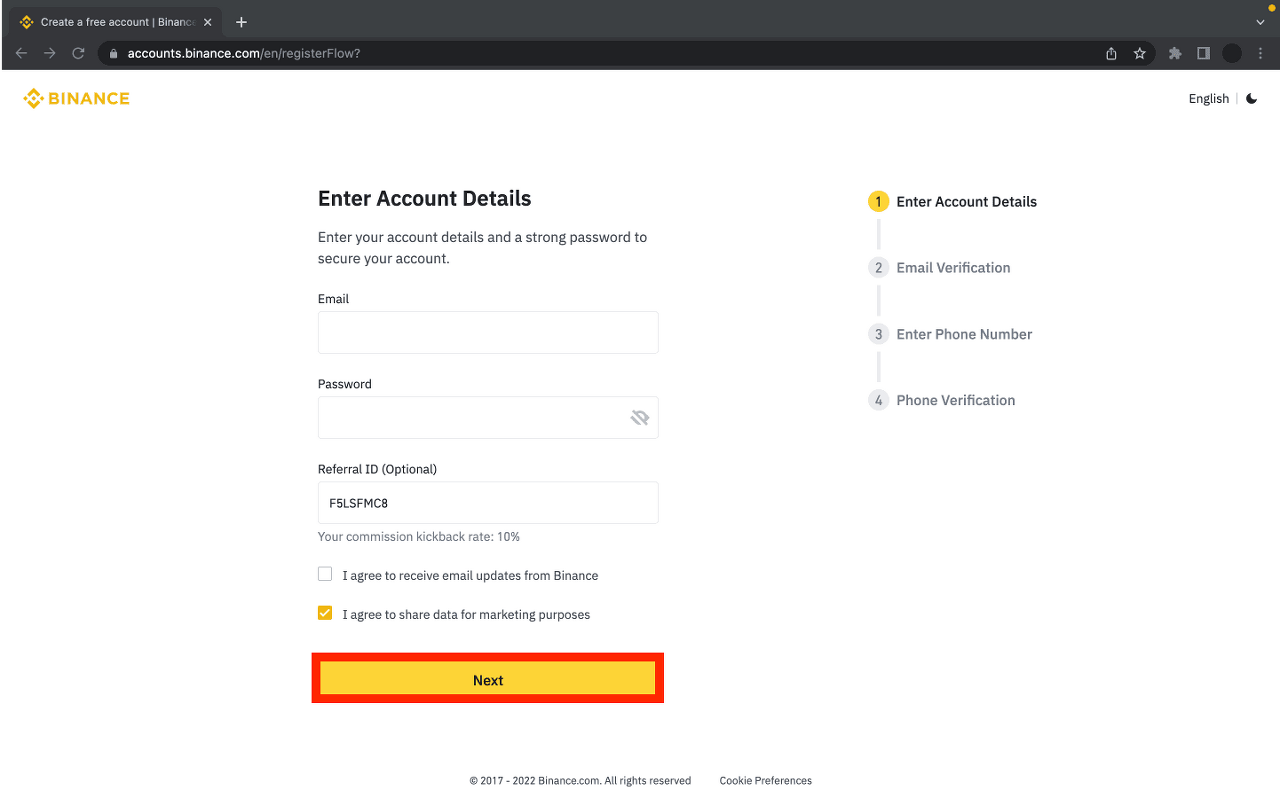 步驟 1 - 註冊幣安帳戶