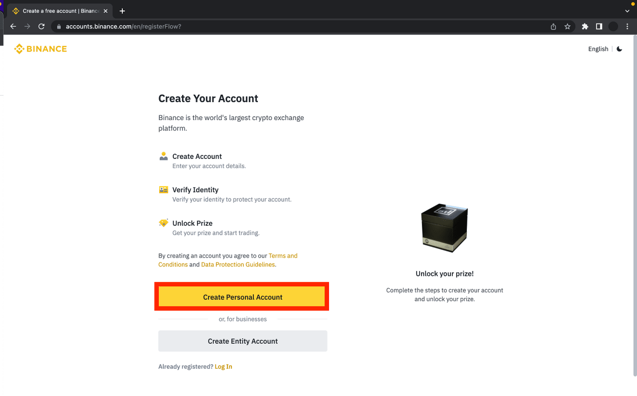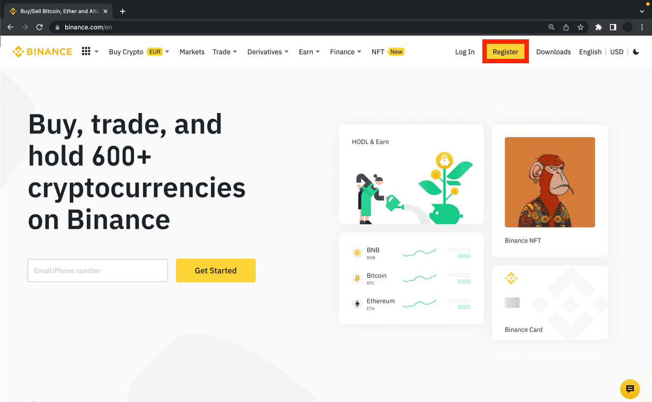 如果您還沒有帳戶,請前往幣安,然後按下頁面右上角的 [註冊]。