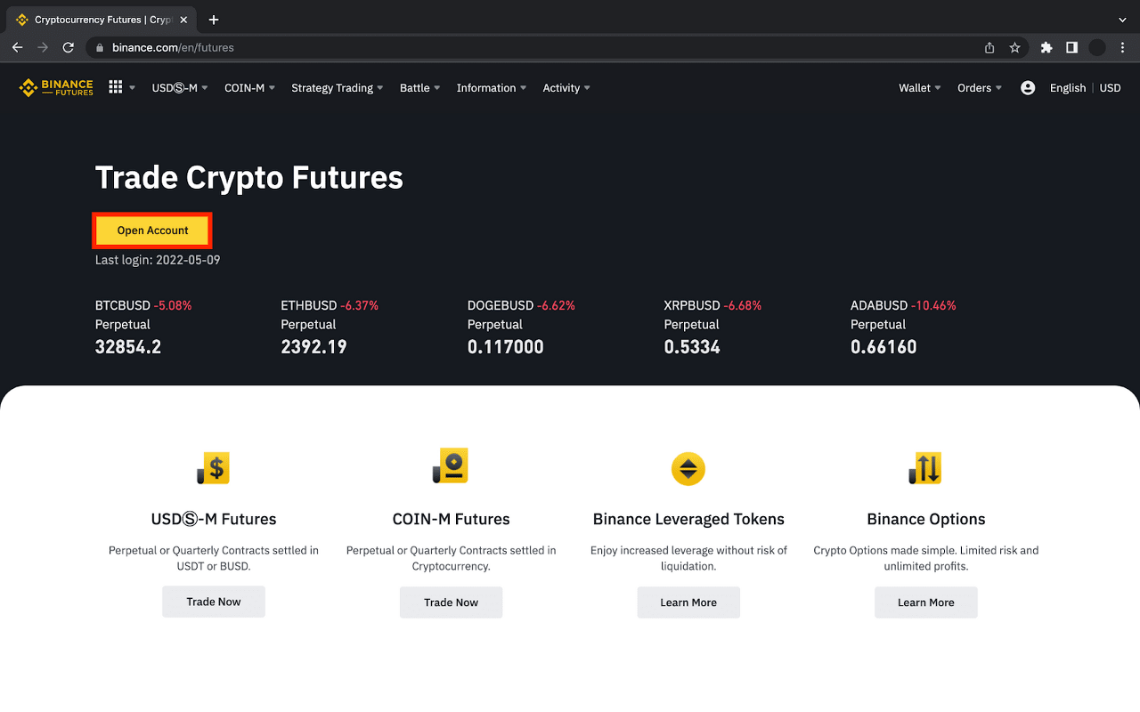 要開立幣安合約帳戶,請前往幣安合約,然後點擊 [開立帳戶]。