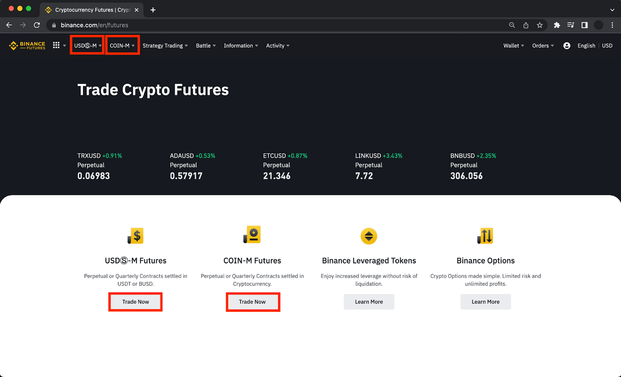 要在幣安期貨上進行首次交易,請前往幣安合約,並選擇 [U 本位] 或 [幣本位] 期貨合約。