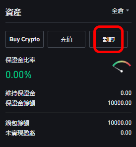 畫面右下角有交易畫面,在紅色畫圈部分有‘劃轉’(Transfer)一項,點擊後就會出現下方畫面。