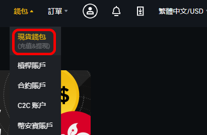 在第一個畫面右上方的“錢包”選項裡選擇單擊“現貨錢包”。