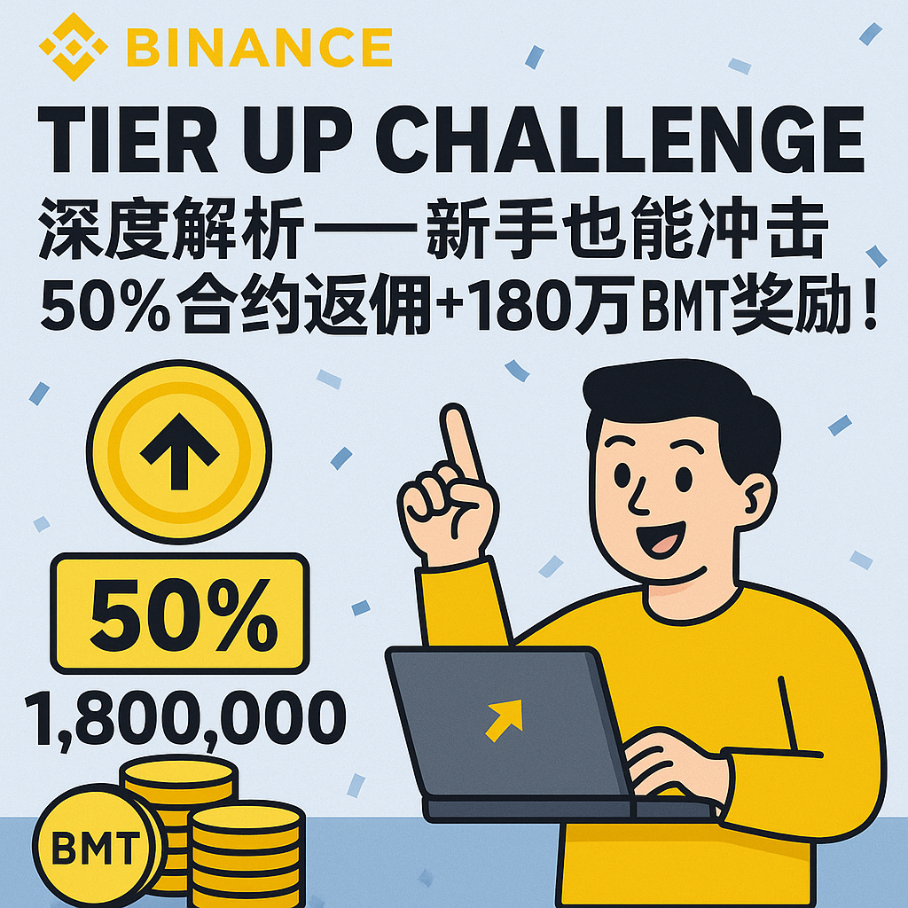 2025 年 8 月 12 日起,币安正式开启为期 一个月 的 Tier Up Challenge,这不仅是一次单纯的奖励活动,更是一次让你 提升合约返佣比例、抢夺百万 BMT 代币奖池 的绝佳机会!无论你是币圈老炮还是刚入门的新手,只要玩法得当,都能从中获利。