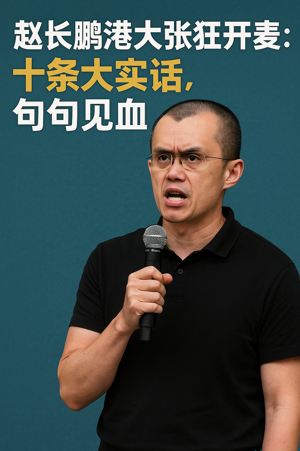 這不是段子,而是 CZ(趙長鵬)在香港的開場白。四年前被趕出大陸,如今他再度站上香港舞台,帶來十條大實話,刀刀見血,聽懂的人笑出聲,沒聽懂的,還在幣圈當韭菜。