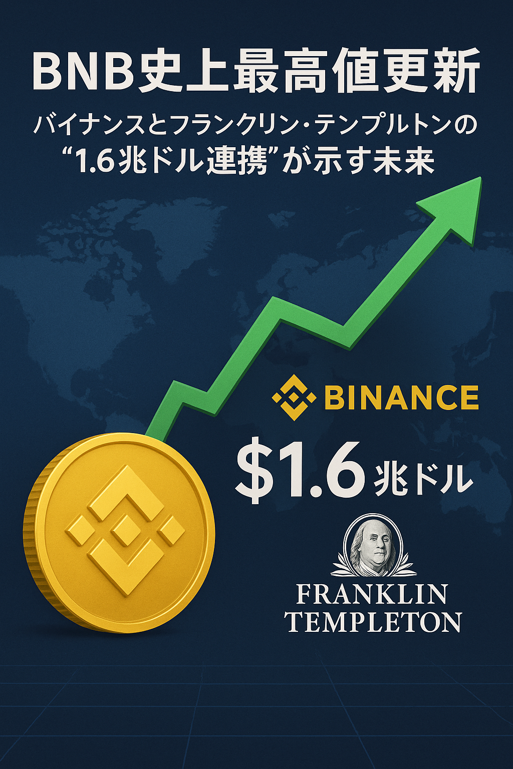 2025年9月10日、バイナンス(Binance)は世界的な運用会社フランクリン・テンプルトン(運用資産1.6兆ドル)と提携し、トークン化投資商品の共同開発を発表しました。これを受け、取引所トークンである BNBは904ドルの史上最高値を更新。まさに「トラディショナル金融」と「ブロックチェーン」の本格融合を示す歴史的な一歩です。