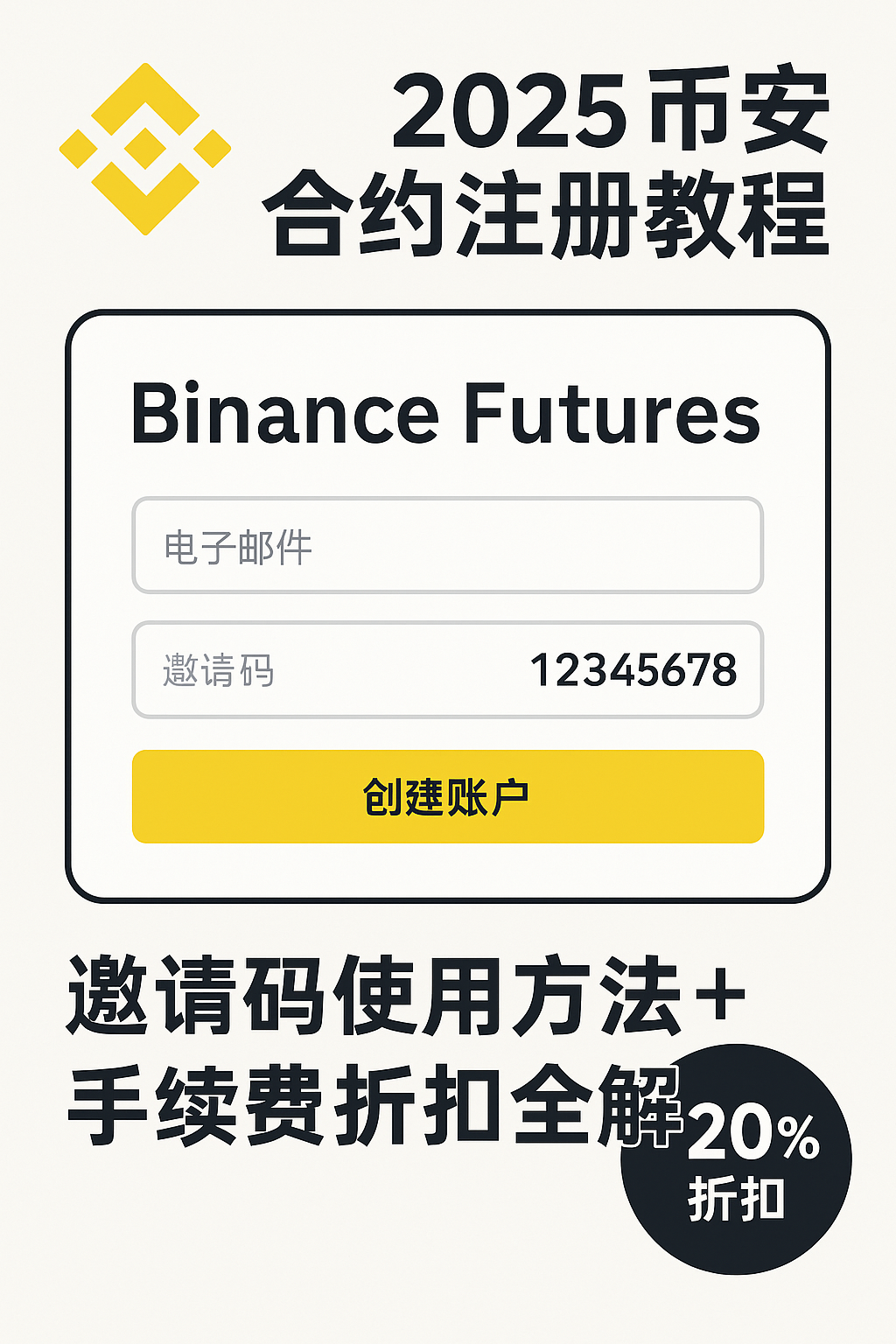 币安合约推荐码(邀请码)是由 Binance 提供的专属代码,用于邀请新用户注册。输入邀请码即可解锁 合约手续费折扣 和 返佣机制。