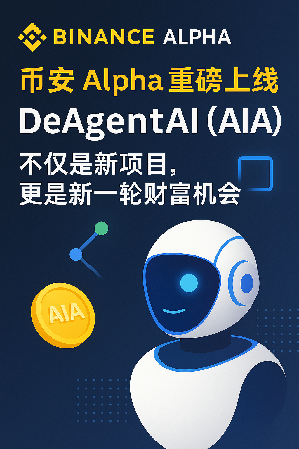 表面上看,这只是币安上线的又一个新代币。但如果你深入分析,就会发现 AIA 的上线,背后是 AI 与 DeFi 融合的大叙事,也是币安 Alpha 在市场“叙事驱动 + 流动性引爆”的双重逻辑下,释放出的下一波赚钱机会。