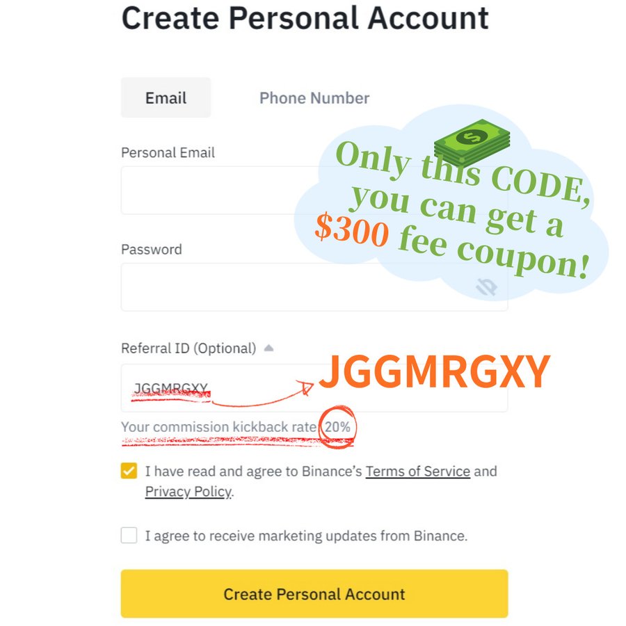 Binanceに新規登録する際、紹介コード「jggmrgxy」 を利用すれば: