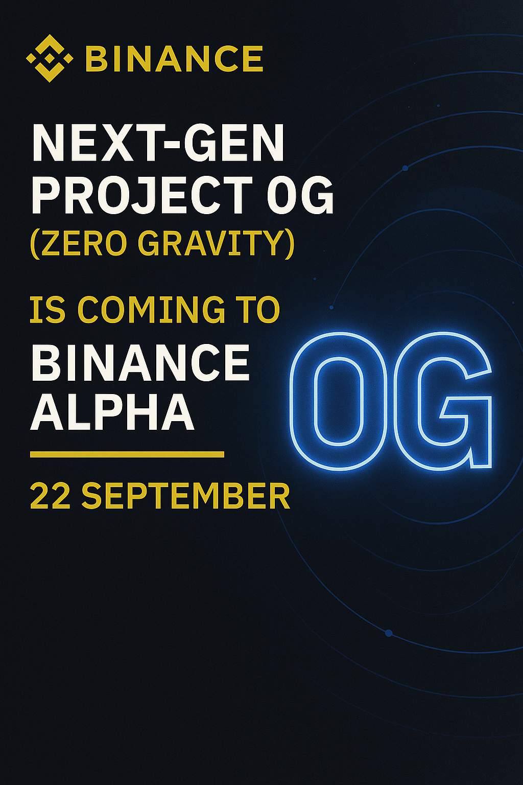 Binanceは公式に、9月22日より 0G(Zero Gravity) を「Binance Alpha」プラットフォームで公開すると発表しました。