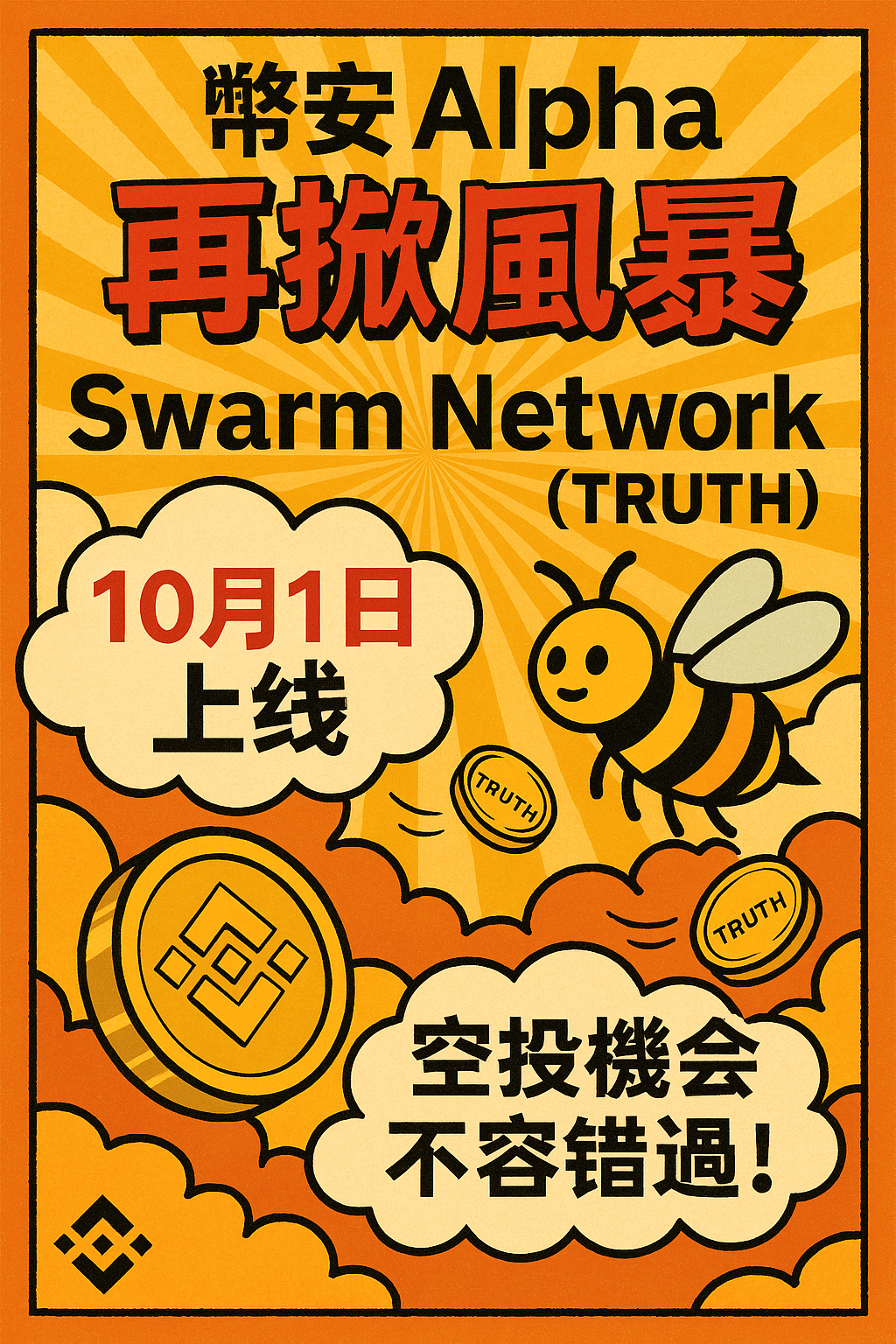 9月末,币安官方在 X 上宣布——Swarm Network(TRUTH) 将于 10 月 1 日正式登陆币安 Alpha。作为近期社区最受期待的项目之一,这一消息瞬间点燃了市场热情。