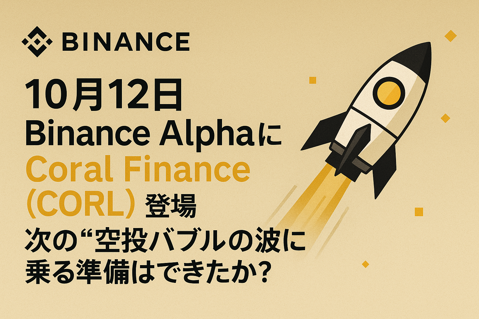 Binance公式はX(旧Twitter)で、10月12日に「Coral Finance(CORL)」がBinance Alphaでローンチされると発表しました。
