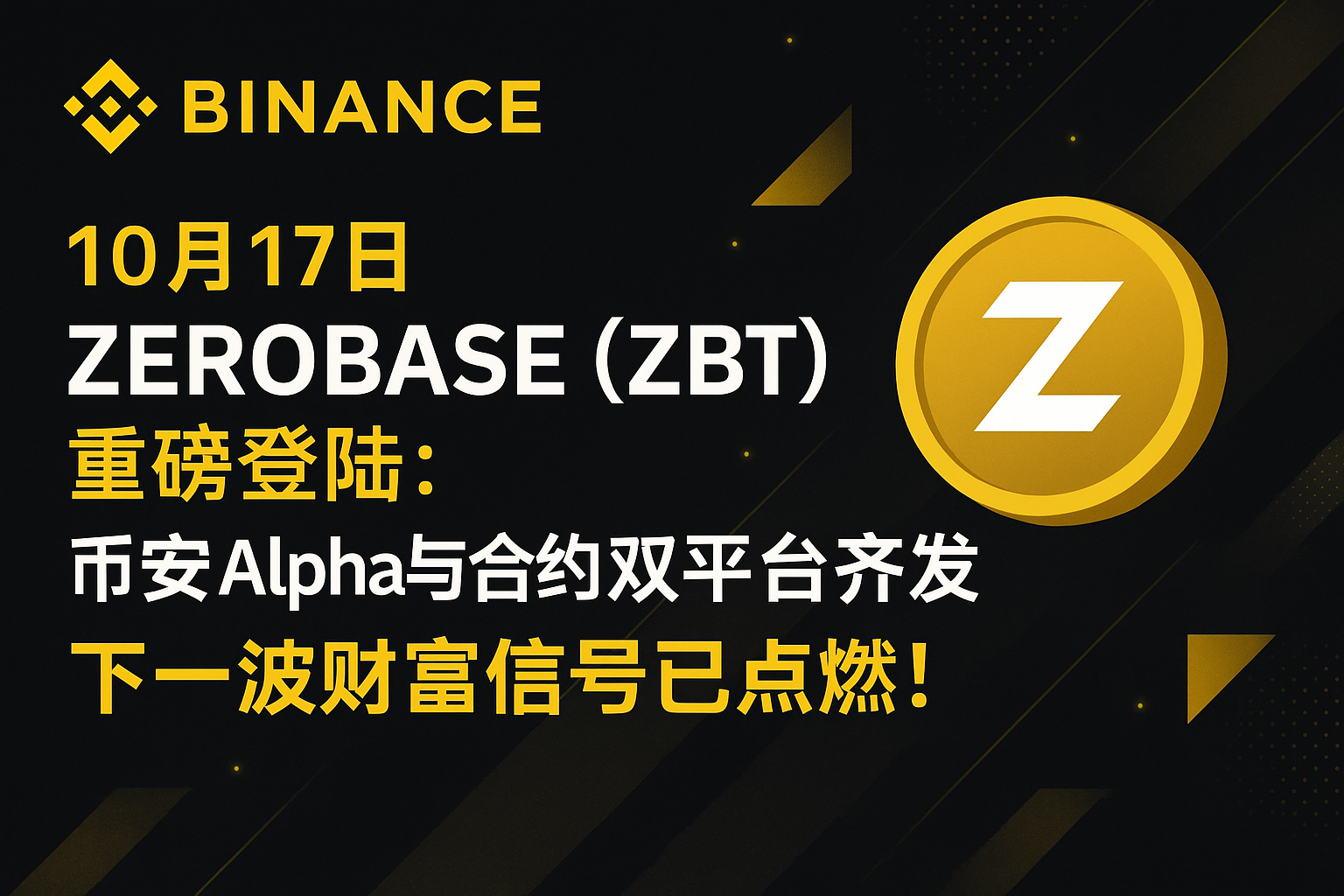 10月17日ZEROBASE (ZBT) 重磅登陆:币安Alpha与合约双平台齐发,下一波财富信号已点燃!
