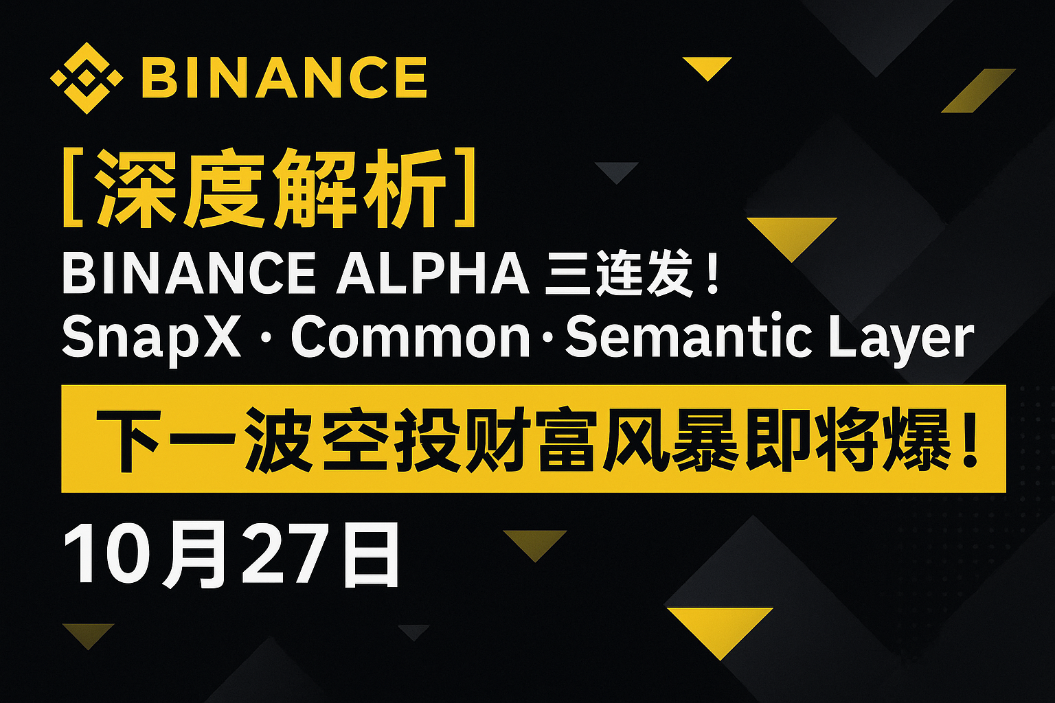 10月27日,币安 Alpha 即将迎来「三连爆」:SnapX(XNAP)、Common(COMMON)、以及 Semantic Layer(42) 三大项目同步上线空投!