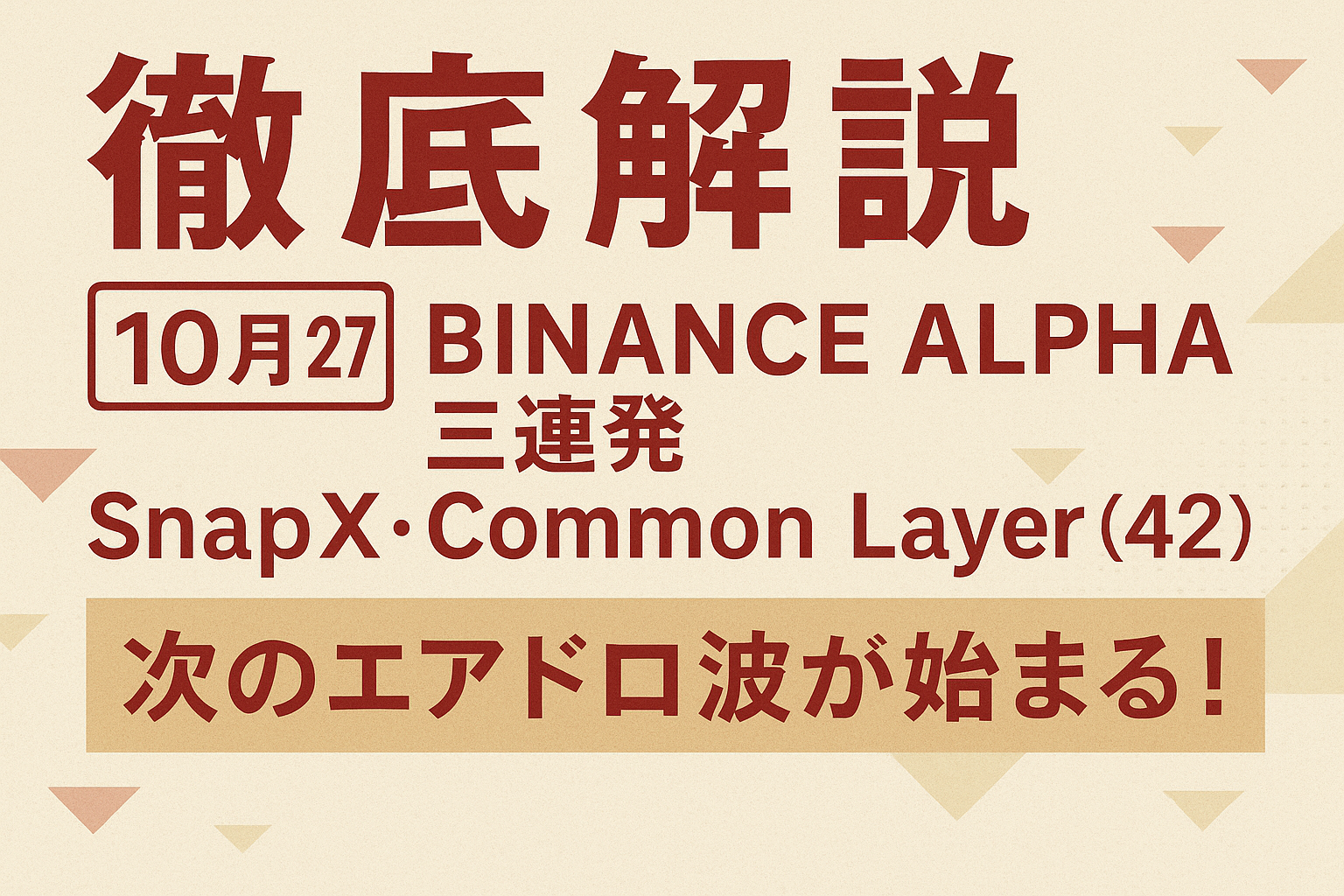 10月27日Binance Alpha三連発!SnapX・Common・Semantic Layer(42)が登場——次のエアドロ波が始まる!