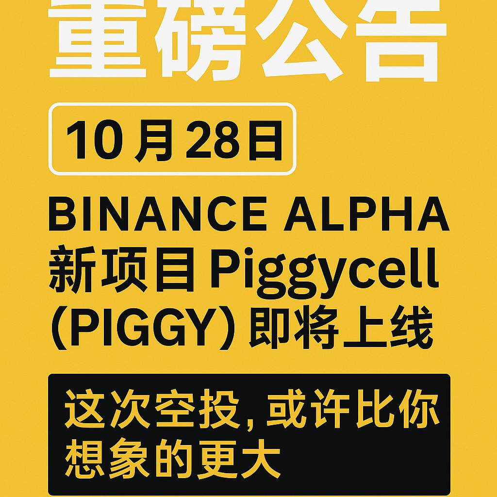 「币安 Alpha 将于 10 月 28 日正式上线 Piggycell(PIGGY)!」