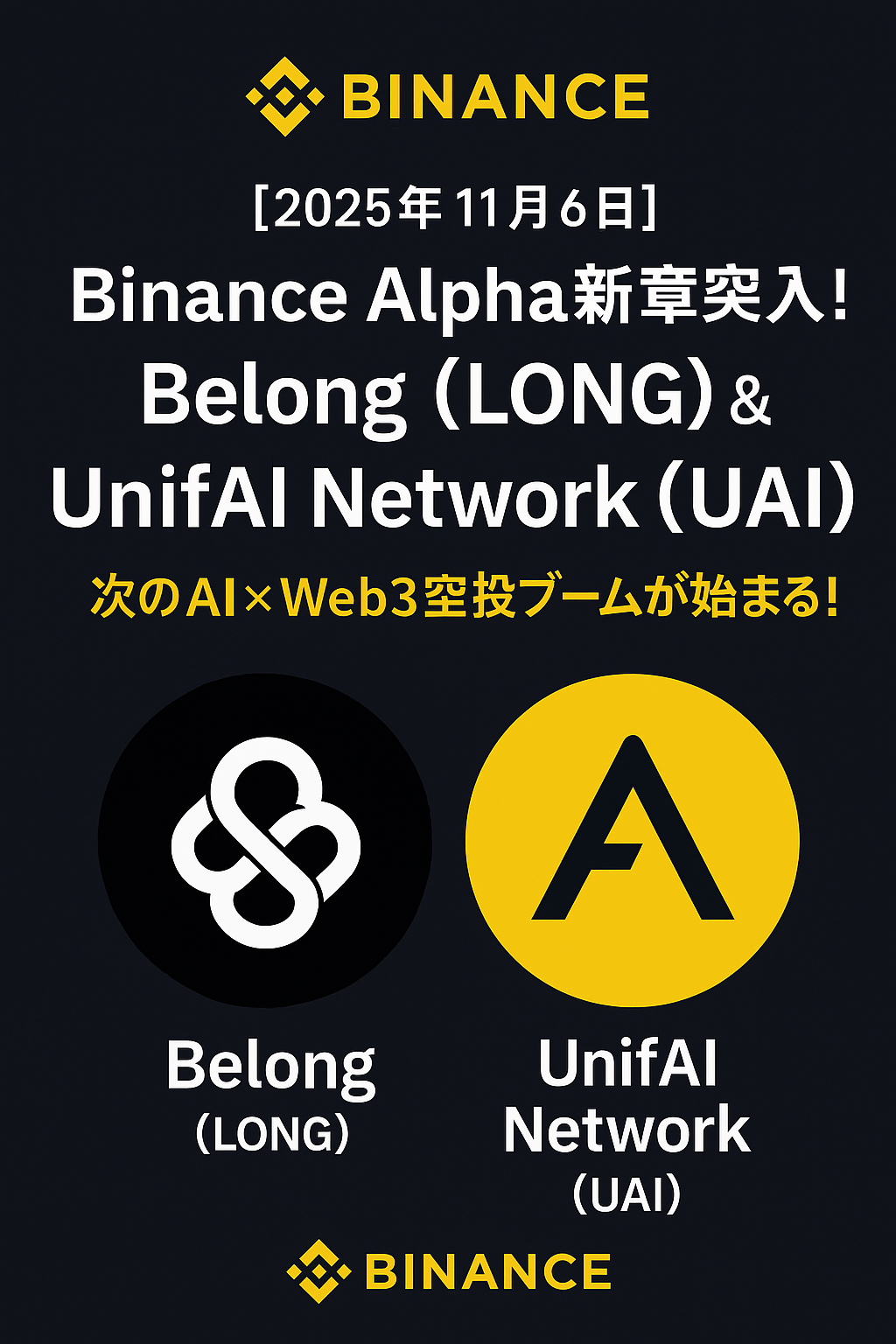 11月6日の Binance Alpha「LONG & UAI」ダブルローンチ は、