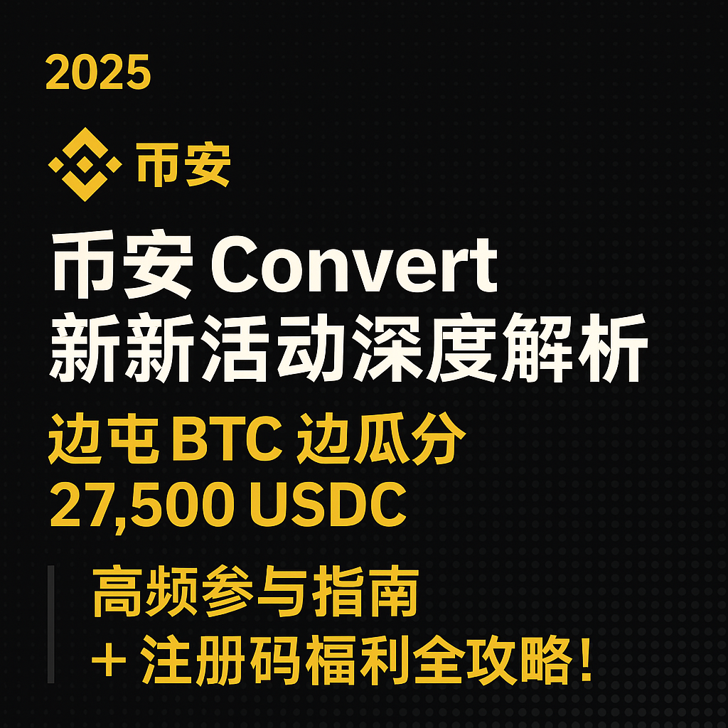 【2025 币安Convert最新活动深度解析】边屯BTC边瓜分27,500 USDC|高频参与指南 + 注册码福利全攻略!