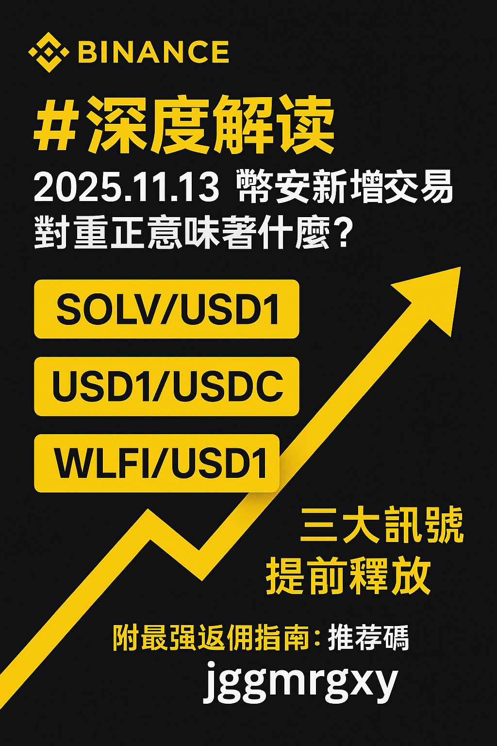 2025 年 11 月 13 日,Binance 再度悄悄上線重磅更新——新增 SOLV/USDC、USD1/USDC、WLFI/USD1 三大交易對,並同步開放 Trading Bots 自動化交易服務。