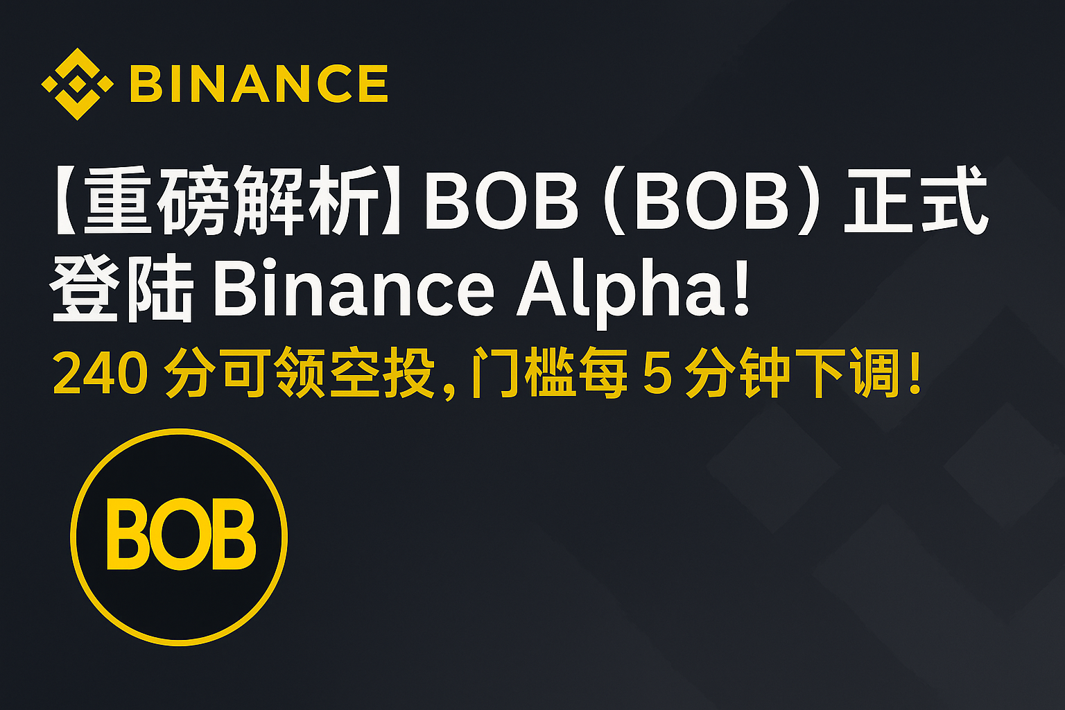 【重磅解析】BOB(BOB)正式登陆 Binance Alpha!240 分可领空投,门槛每 5 分钟下调!