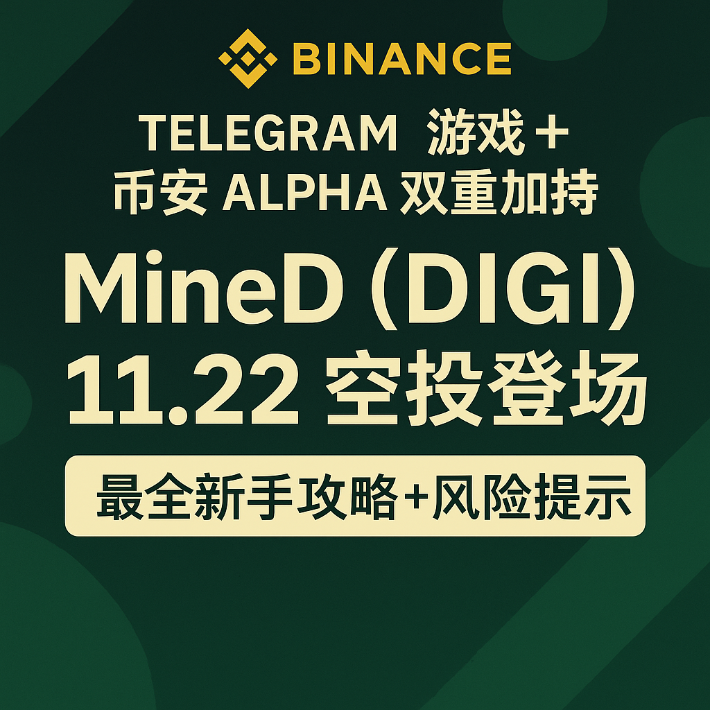 11 月 22 日,币安 Alpha 将上线一个近期超受关注的轻量级 GameFi 项目——MineD(DIGI)。