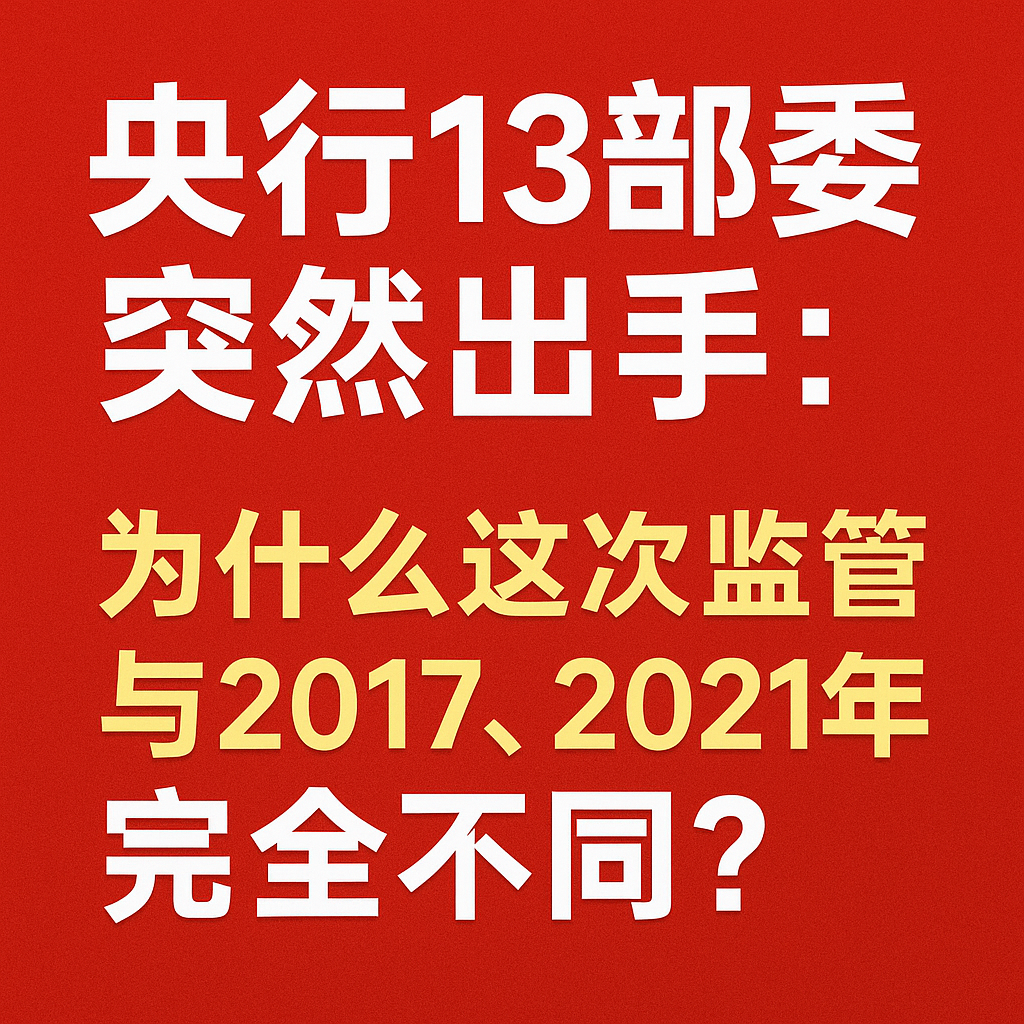 近期,央行联合13个部门发布文件,进一步加强对虚拟货币相关活动的打击力度。市场情绪一度高度紧张,但币价并未如预期出现断崖式下跌。这一现象引发币圈广泛讨论:此次监管究竟与2017年、2021年两轮政策有何根本区别?为什么“重磅利空”并未带来剧烈下跌?又该如何理解接下来的行情走向?