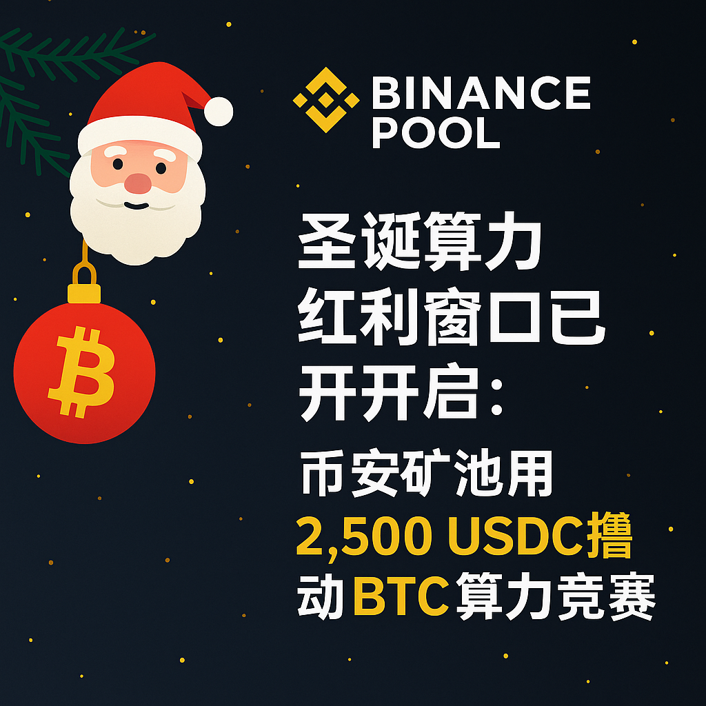 在比特币算力竞争日益激烈、矿工利润空间被持续压缩的背景下,算力增量正在成为矿工突围的核心变量。2025年年末,币安矿池选择在关键时间节点推出一项明确指向“算力增长”的激励活动——圣诞BTC算力增长挑战。