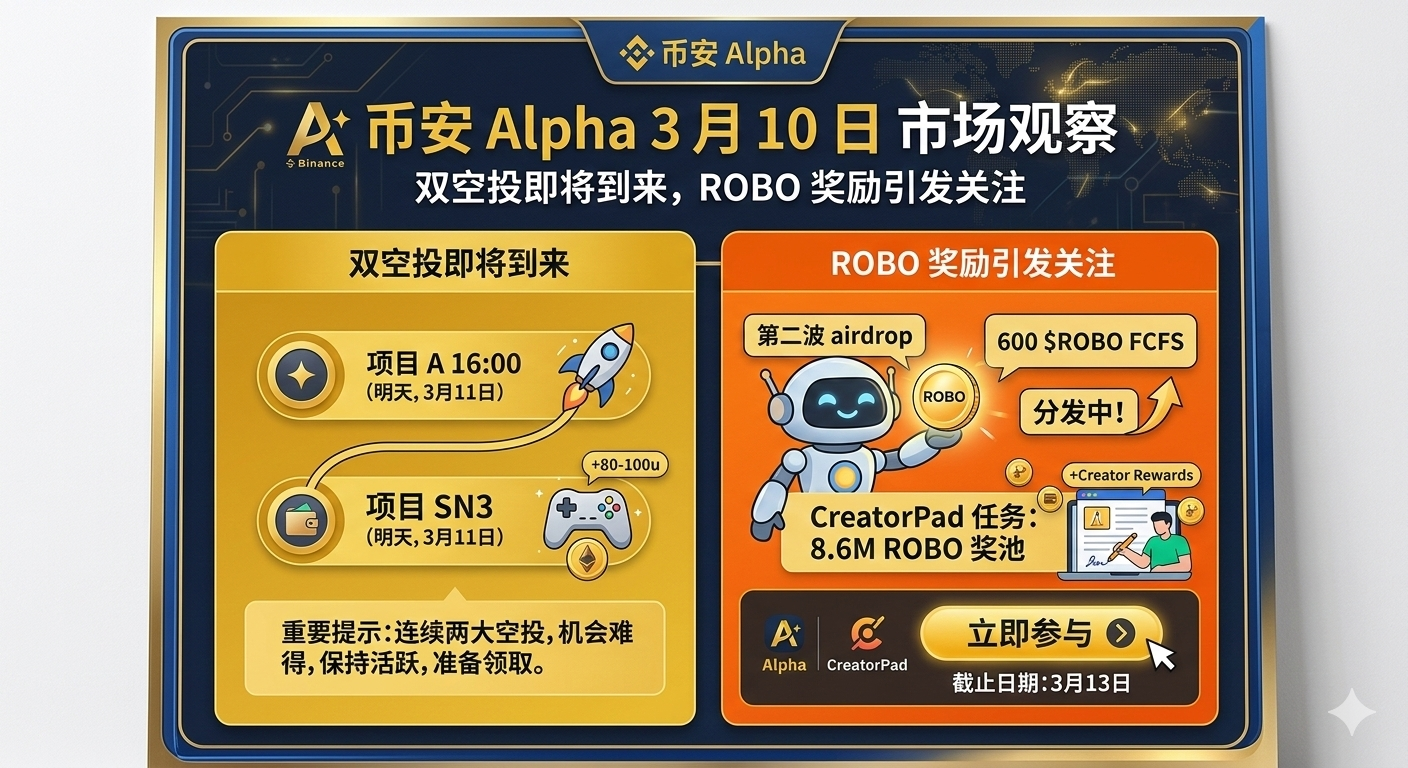 币安 Alpha 3 月 10 日市场观察:双空投即将到来,ROBO 奖励引发关注