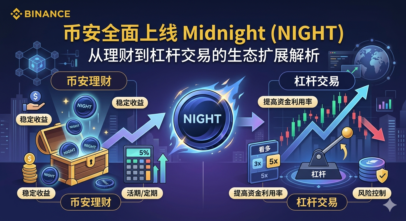 2026年3月11日,全球领先的加密资产交易平台 Binance 发布公告,正式宣布将 Midnight(NIGHT) 纳入其多项核心产品体系,包括 Binance Earn、Buy Crypto、Convert、Margin 以及 VIP Loan。这一举措标志着 NIGHT 代币在币安生态中的全面扩展,也为用户提供了更加多元化的参与方式。