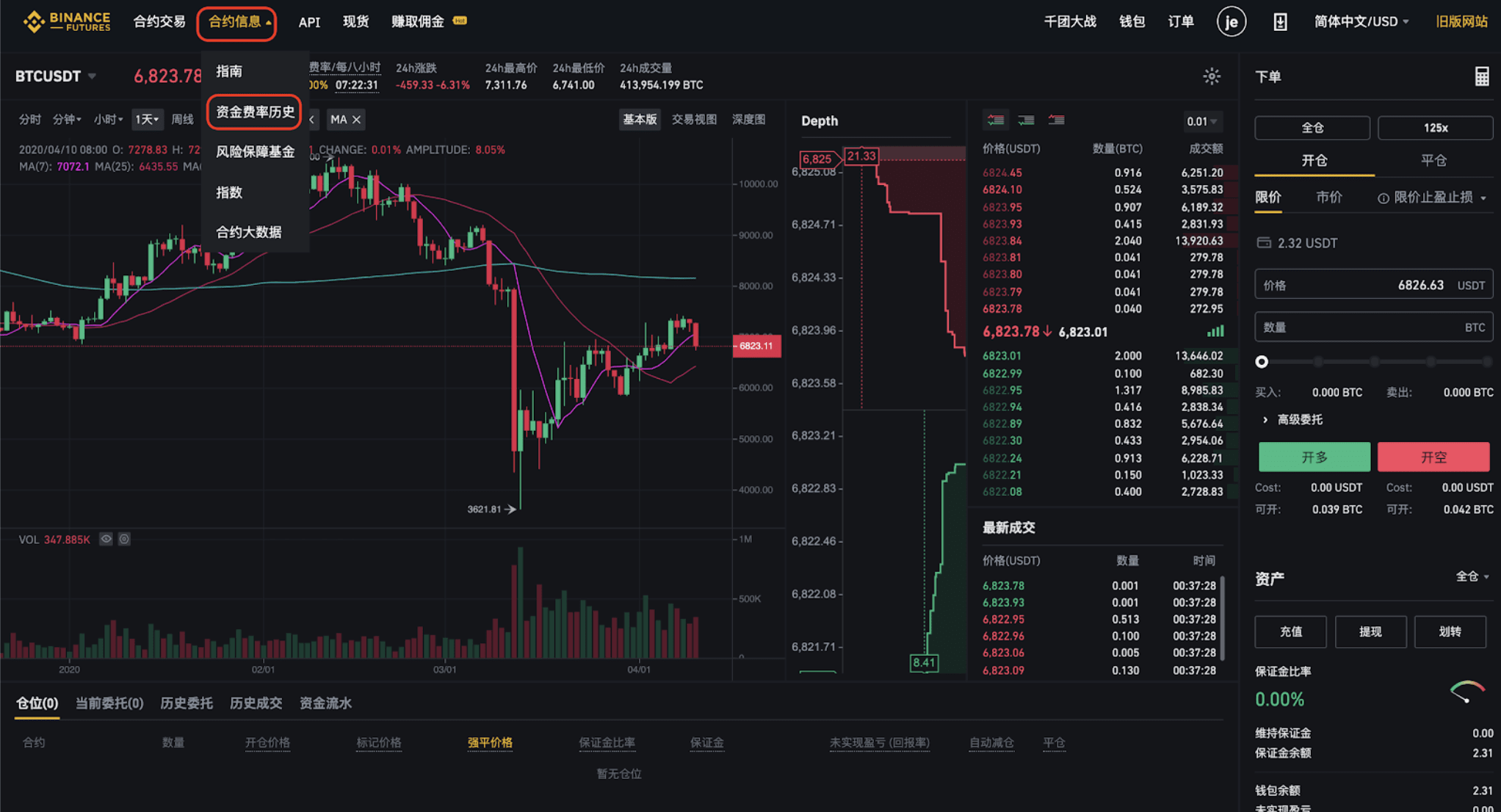 旧版交易界面前往实时和历史资金费率入口:
