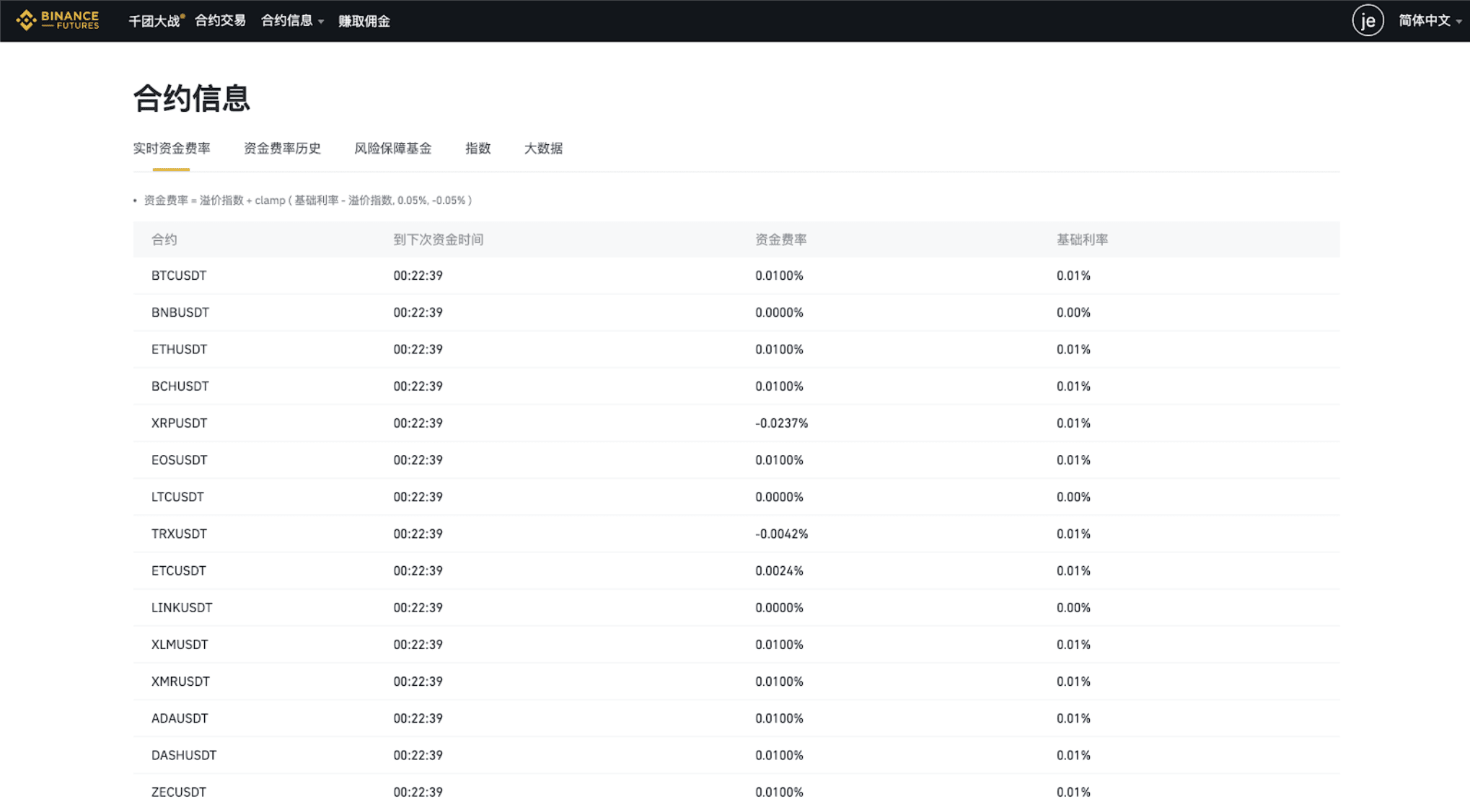 實時資金費率: