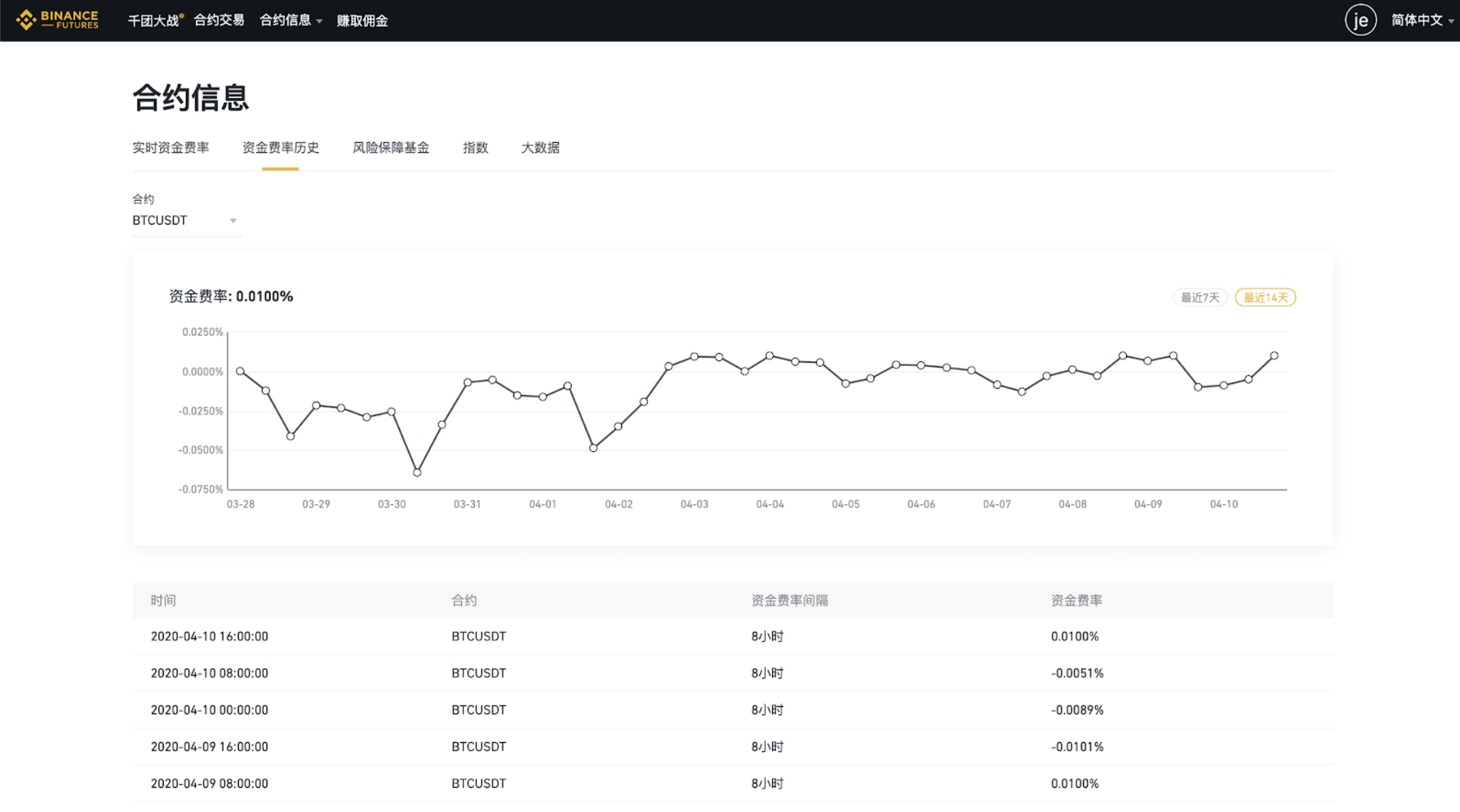 資金費率歷史: